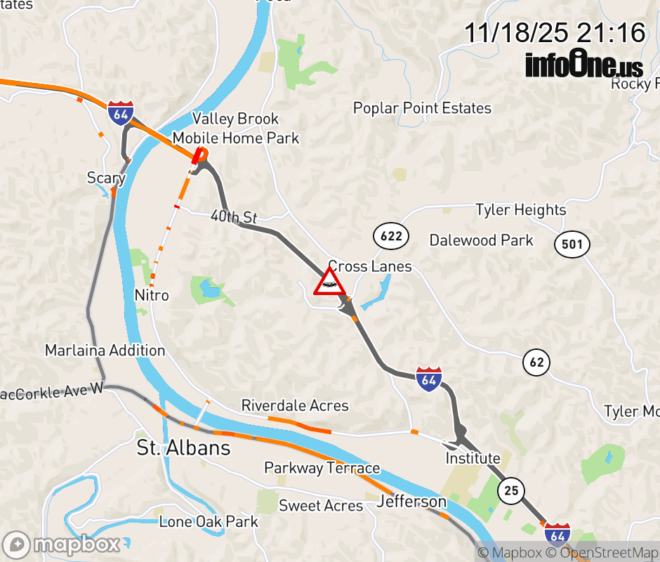 Canceled 11/18/25 11:38 PM Location: I-64 at MM 47.0, WV Accident.