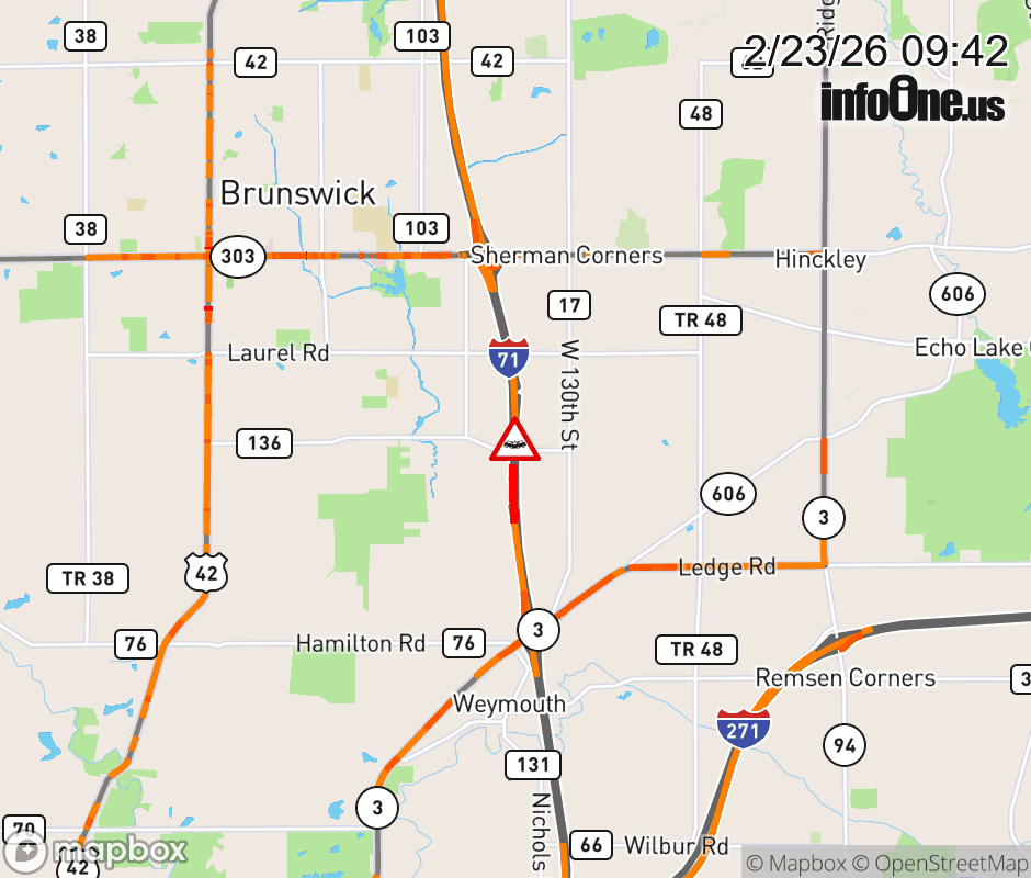 Expect lane closures on I-71 North beyond SR-3, due to a crash. ![]() |