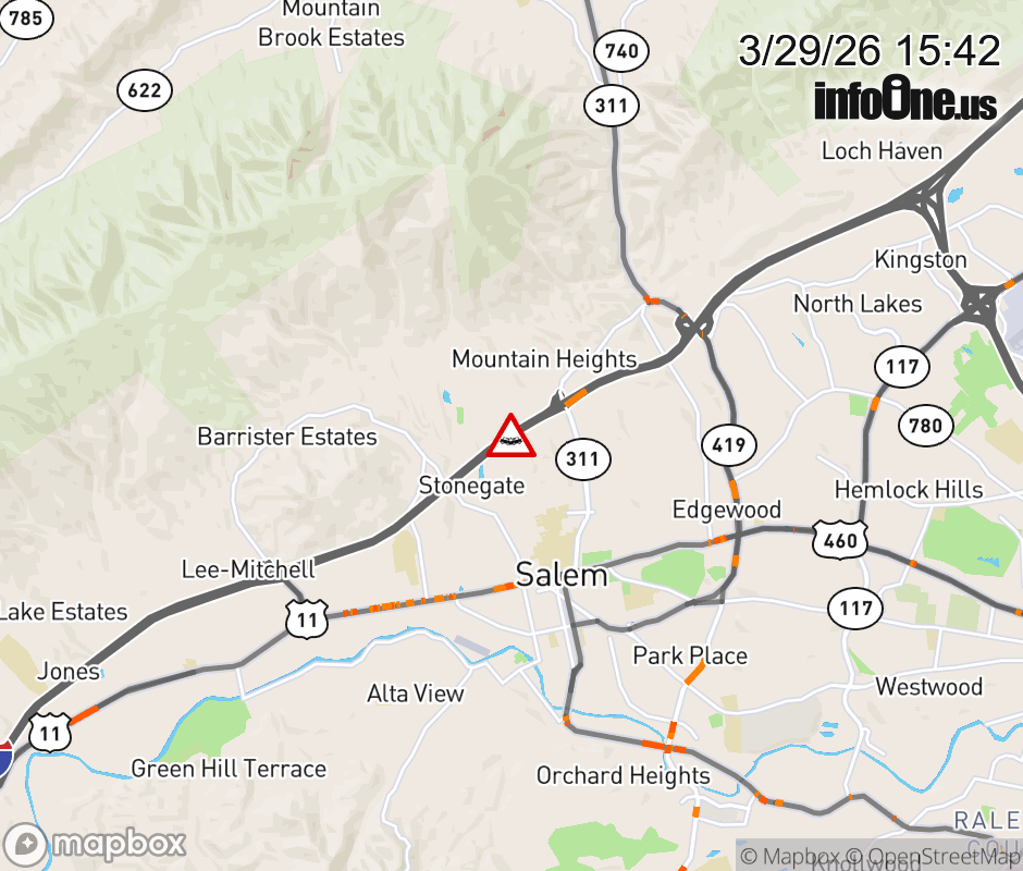 On I-81 at mile marker 139.7 in the County of Roanoke, motorists can expect delays due to a vehicle crash. The north left shoulder is closed. ![]() |