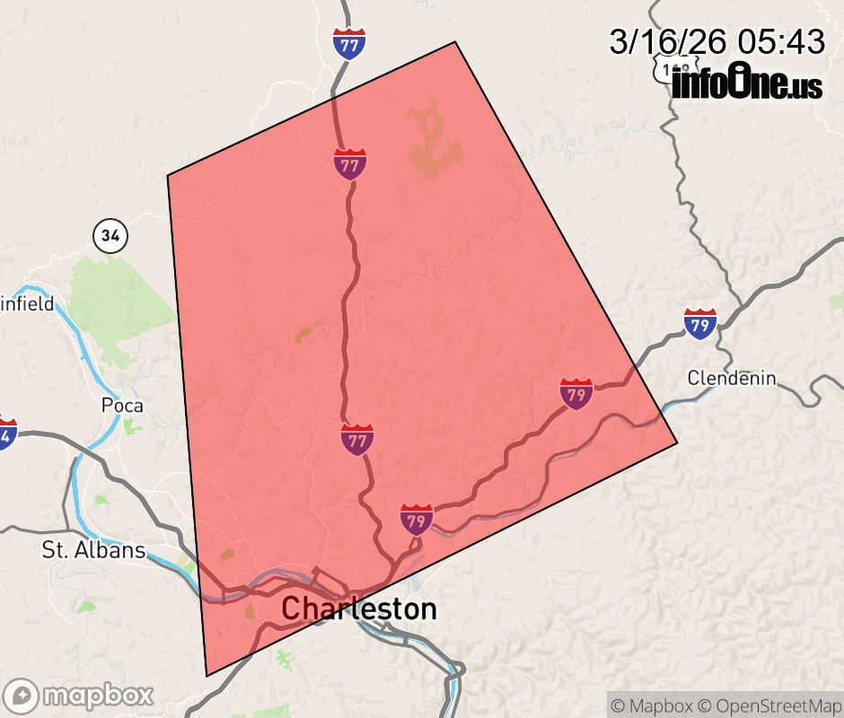 Canceled 3/16/26 5:57 AM Severe Thunderstorm Warning issued March 16 at 5:42AM EDT until March 16 at 6:00AM EDT by NWS Charleston WV At 542 AM EDT, a severe thunderstorm was located over Sissonville, or 9 miles north of Charleston, moving east at 40 mph. HAZARD...60 mph wind gusts. SOURCE...Radar indicated. IMPACT...Expect damage to roofs, siding, and trees. Locations impacted include... Charleston, Jefferson, South Charleston, Dunbar, Sissonville, Elkview, Cross Lanes, Pinch, Kentuck, and Liberty. ![]() |