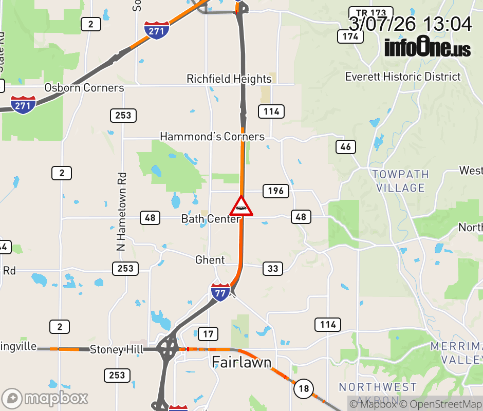 The left lane is blocked on I-77 South beyond Summit County Rest Area 4-32, due to a crash. ![]() |