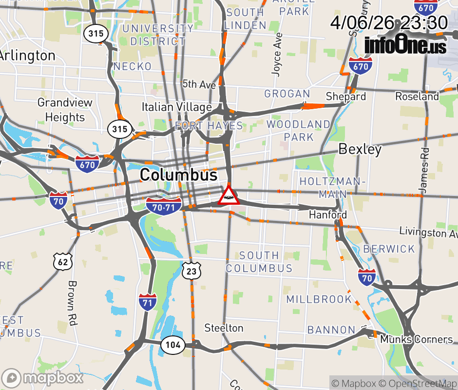 Ramp I-71 South to I-70 East CLOSED because of a crash. ![]() |