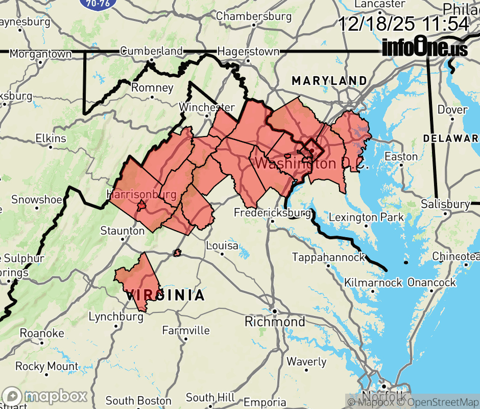 Canceled 12/18/25 8:02 PM Wind Advisory issued December 18 at 11:53AM EST until December 19 at 7:00PM EST by NWS Baltimore MD/Washington DC * WHAT... West winds 20 to 30 mph with gusts of 45 to 55 mph expected. * WHERE... Washington DC, and portions of central Maryland, and central, northern, northwest, and western Virginia. * WHEN... From noon to 7 PM EST Friday. * IMPACTS... Gusty winds will blow around unsecured objects. Tree limbs could be blown down and a few power outages may result. * ADDITIONAL DETAILS... Gusty winds may persist for several more hours Friday evening. ![]() |