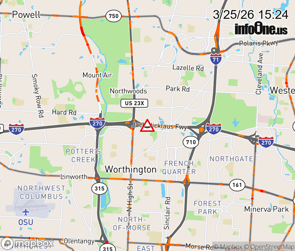 The right shoulder is blocked on I-270 East beyond US-23, due to a crash. ![]() |
