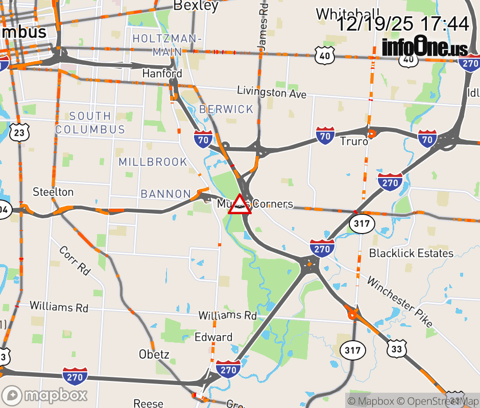 The 2 left lanes are blocked on SR-104 West at US-33, due to a crash. ![]() |