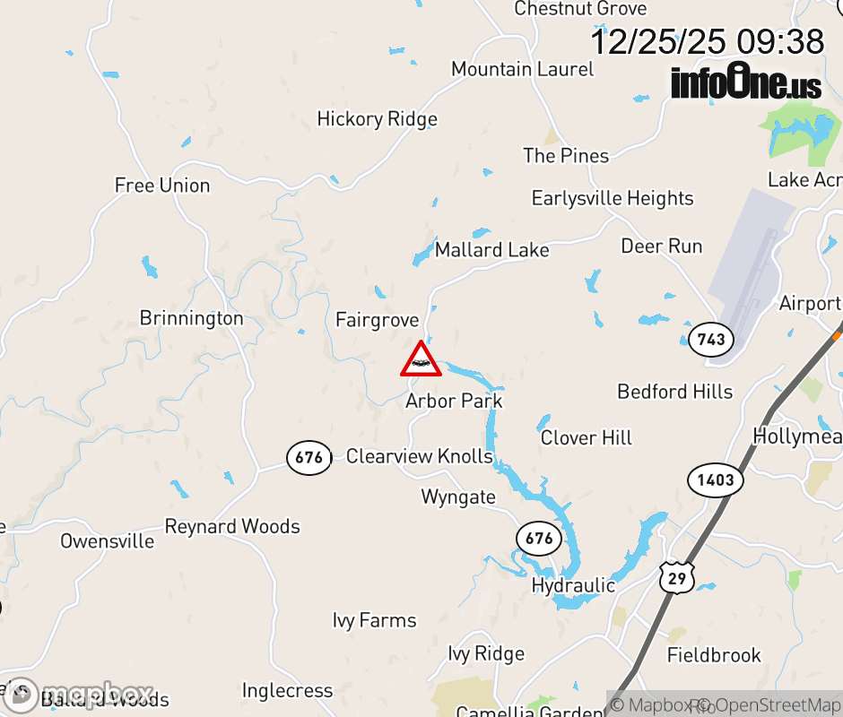 On Rt. 660 in the County of Albemarle, in the vicinity of Bleak House Rd; Rt. 662N/S (Albemarle County), motorists can expect delays due to a vehicle crash. All west lanes are closed. ![]() |
