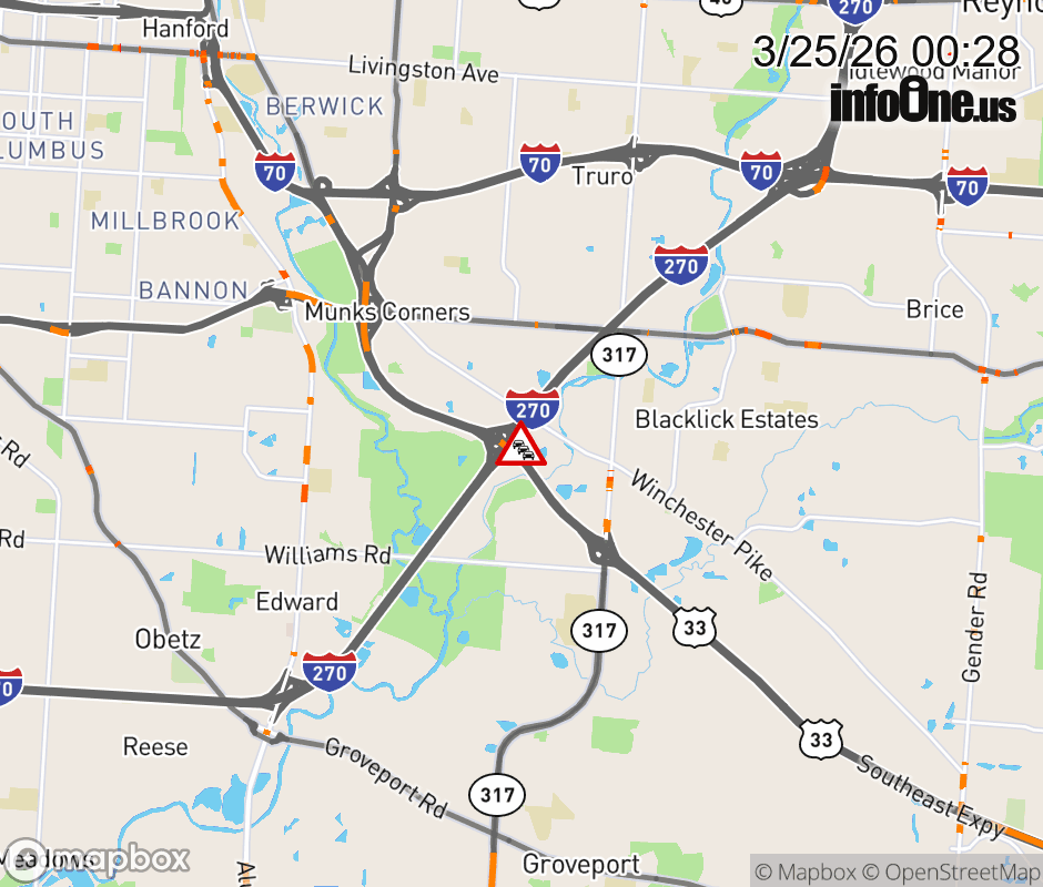 Ramp I-270 North to US-33 West CLOSED because of repairs/maintenance. ![]() |