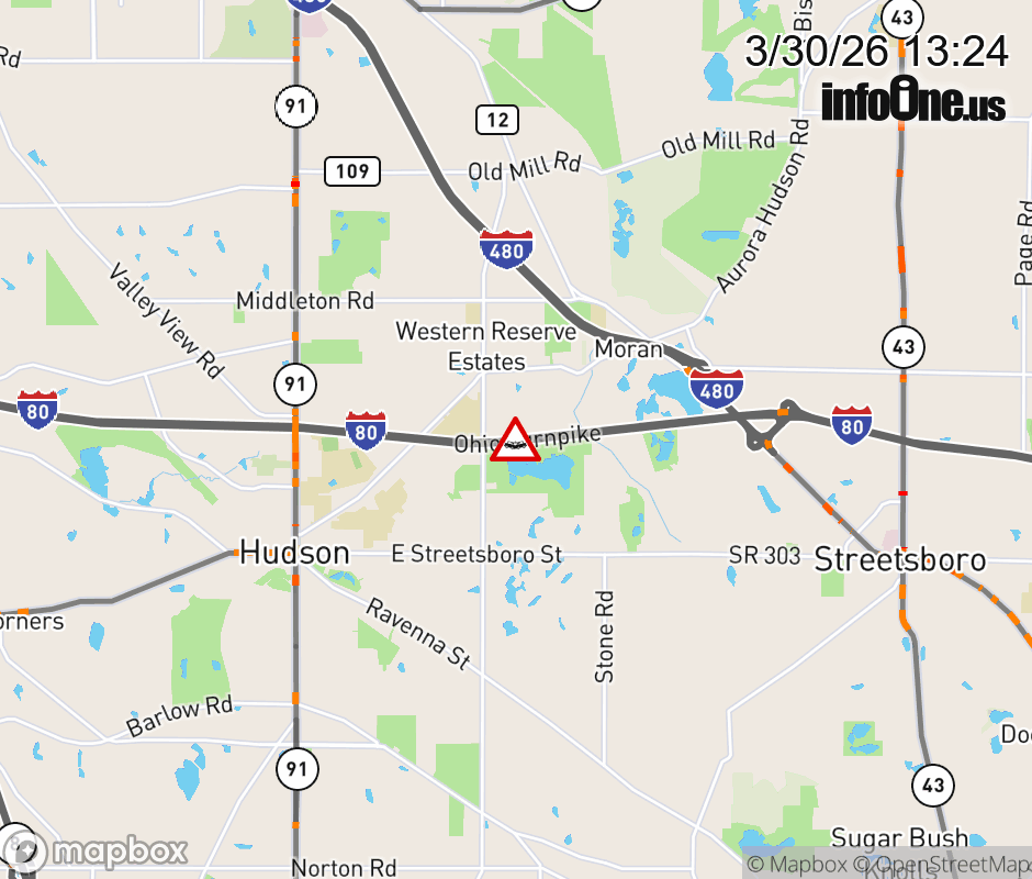 Expect lane closures on I-80 West (Ohio Turnpike) beyond I-480/SR-14, due to a crash. ![]() |