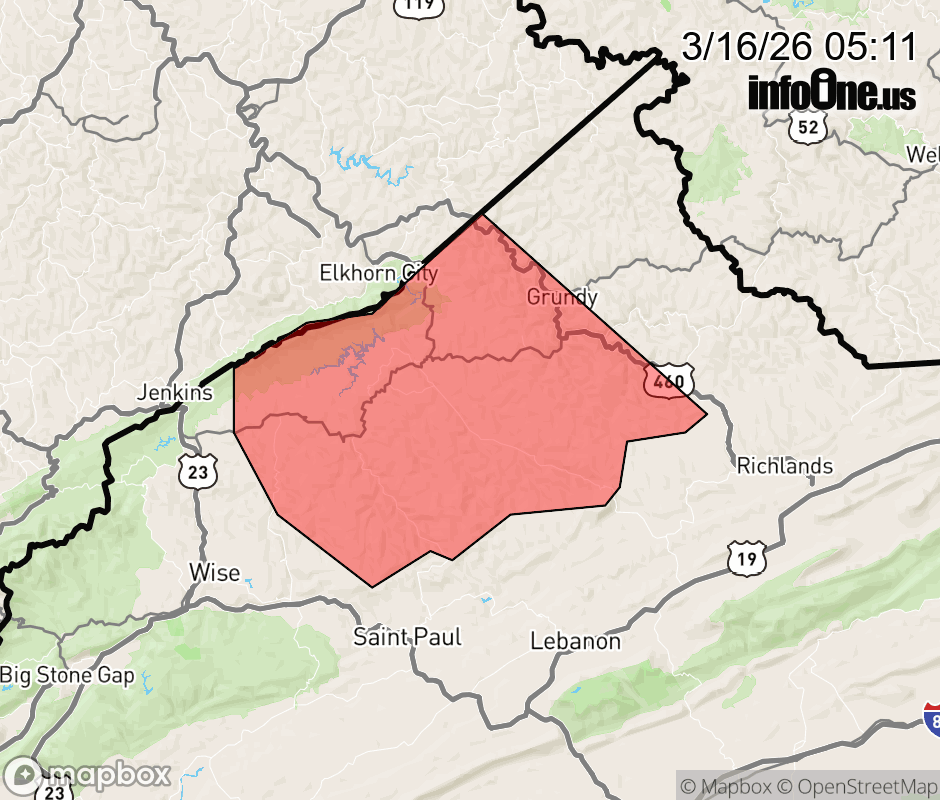 Canceled 3/16/26 5:37 AM Severe Thunderstorm Warning issued March 16 at 5:10AM EDT until March 16 at 5:45AM EDT by NWS Charleston WV SVRRLX The National Weather Service in Charleston West Virginia has issued a * Severe Thunderstorm Warning for... Dickenson County in southwestern Virginia... Southwestern Buchanan County in southwestern Virginia... * Until 545 AM EDT. * At 507 AM EDT, a severe thunderstorm was located near Wise, moving northeast at 50 mph. This storm has a history of producing tree damage across Wise County, Virginia. HAZARD...60 mph wind gusts. SOURCE...Radar indicated. IMPACT...Expect damage to roofs, siding, and trees. * Locations impacted include... Clintwood, Grundy, Haysi, Breaks Interstate, Davenport, John Flannagan Lake, Big Rock, Trammel, Clinchco, Oakwood, Nora, Vansant, and McClure. ![]() |