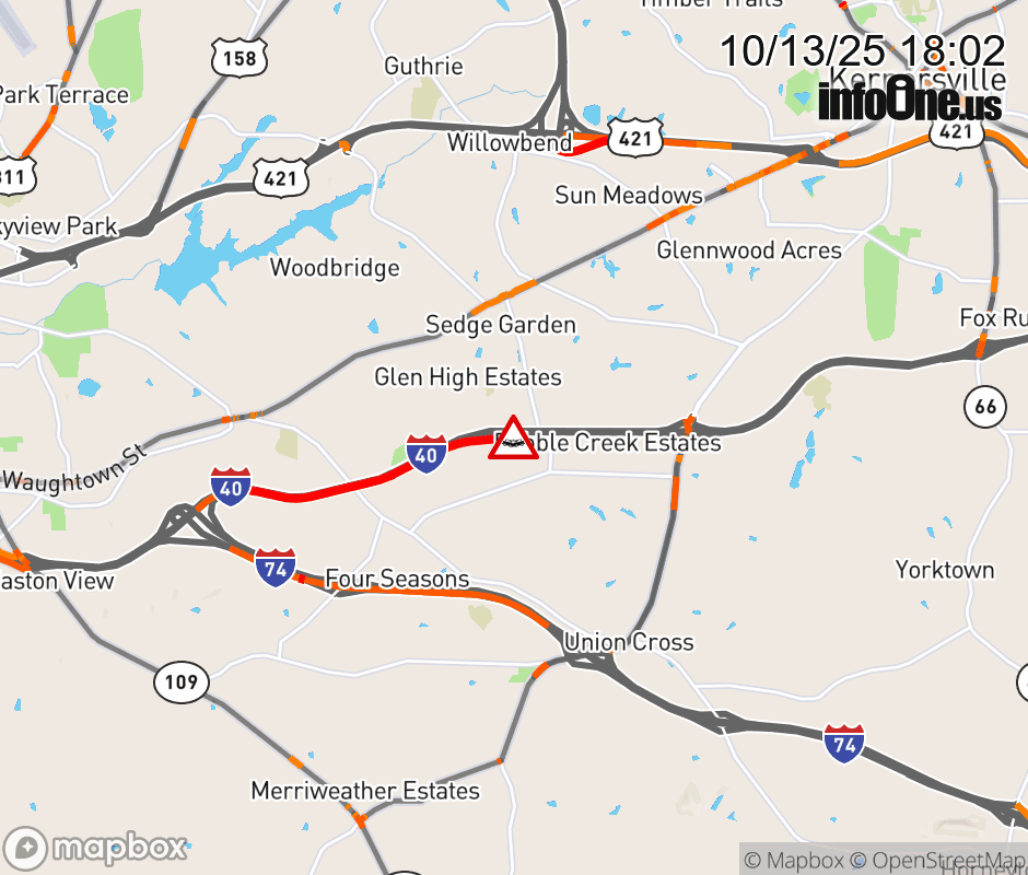 Canceled 10/13/25 7:04 PM Location: I-40E at MM 199, NC Vehicle Crash.