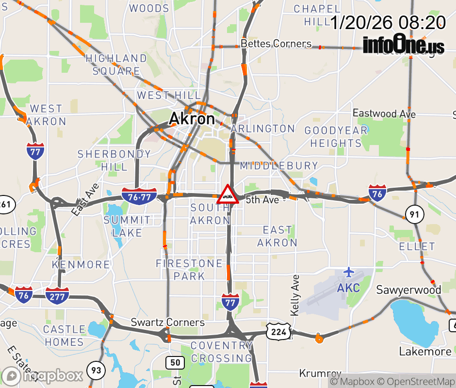 The right shoulder is blocked on Ramp SR-8 South to I-76 West/I-77 North, due to a disabled vehicle. ![]() |