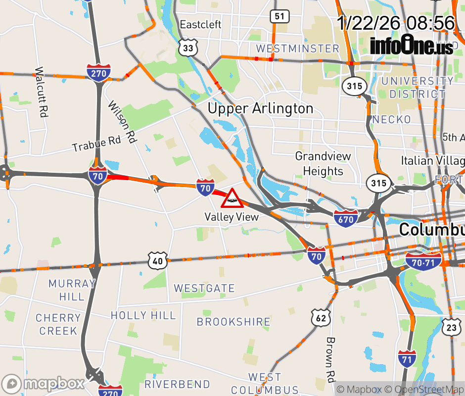 The left shoulder is blocked on I-70 East beyond Wilson Rd, due to a crash. ![]() Updated: Thu 1/22/26 8:56 AM EST |