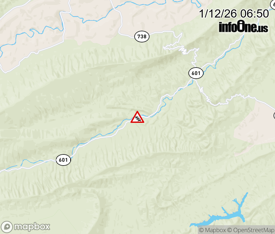 On Rt. 601 East in the County of Bland, in the vicinity of Spur Branch Rd; Rt. 602E/W (Bland County), motorists can expect delays due to weather. Lane closures exist. Updated: Mon 1/12/26 6:50 AM EST ![]() Updated: Mon 1/12/26 6:50 AM EST |