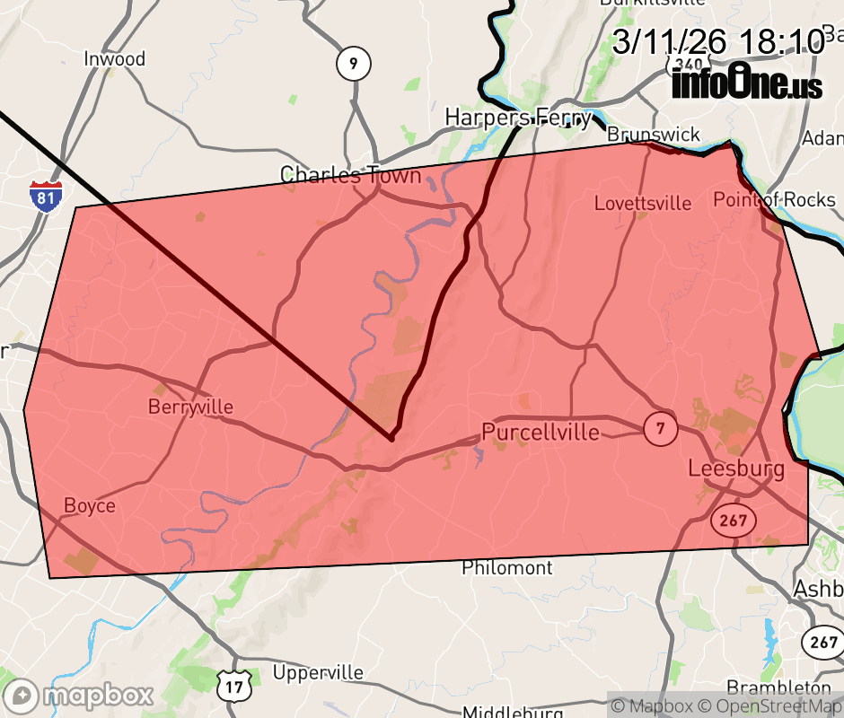 Canceled 3/11/26 6:19 PM Severe Thunderstorm Warning issued March 11 at 6:09PM EDT until March 11 at 6:45PM EDT by NWS Baltimore MD/Washington DC SVRLWX The National Weather Service in Sterling Virginia has issued a * Severe Thunderstorm Warning for... Northwestern Loudoun County in northern Virginia... East central Frederick County in northwestern Virginia... Clarke County in northwestern Virginia... Southern Jefferson County in the Panhandle of West Virginia... Southern Berkeley County in the Panhandle of West Virginia... * Until 645 PM EDT. * At 609 PM EDT, a severe thunderstorm was located over Berryville, or 9 miles southwest of Charles Town, moving east at 55 mph. HAZARD...60 mph wind gusts. SOURCE...Radar indicated. IMPACT...Damaging winds will cause some trees and large branches to fall. This could injure those outdoors, as well as damage homes and vehicles. Roadways may become blocked by downed trees. Localized power outages are possible. Unsecured light objects may become projectiles. * Locations impacted include... Leesburg, Charles Town, Purcellville, Brunswick, Berryville, Round Hill, Bluemont, Lovettsville, Boyce, Hamilton, Hillsboro, Waterford, Gaylord, Millville, Lincoln, Stringtown, Rippon, Brucetown, Paeonian Springs, and Neersville. ![]() |