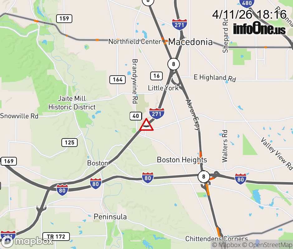 Expect lane closures on I-271 South beyond SR-8 North, due to a crash. ![]() |