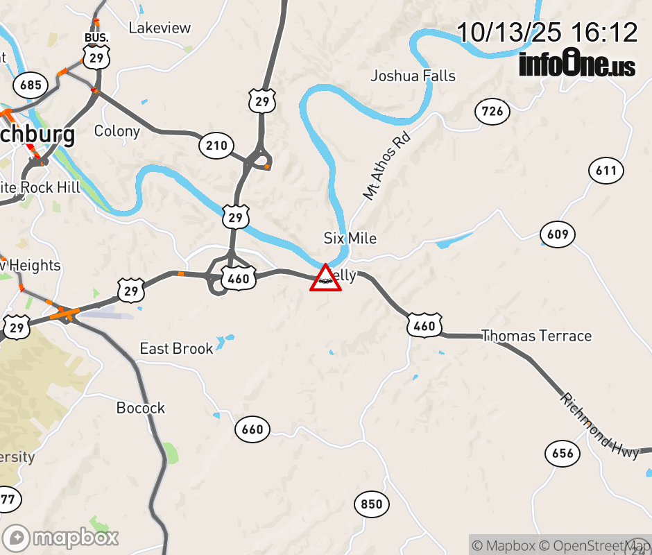 On US-460 East in the County of Campbell, in the vicinity of the ramp at Rt. 726N/S, motorists can expect delays due to a vehicle crash. Lane closures exist.