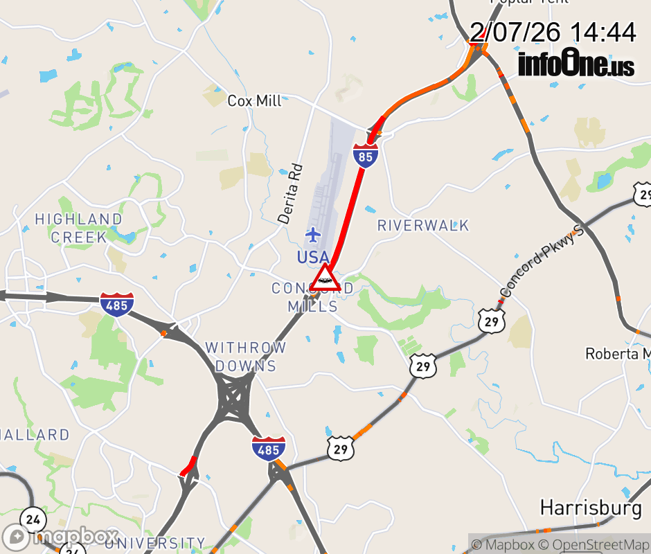 The right shoulder is closed near Exit 49(Bruton Smith Blvd). Updated: Sat 2/7/26 2:44 PM EST ![]() Updated: Sat 2/7/26 2:44 PM EST |