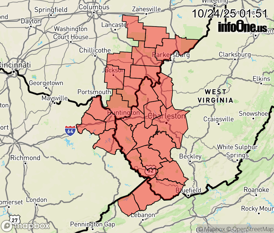 Portions of northeast Kentucky, southeast Ohio, southwest Virginia, and central, southern, and western West Virginia.