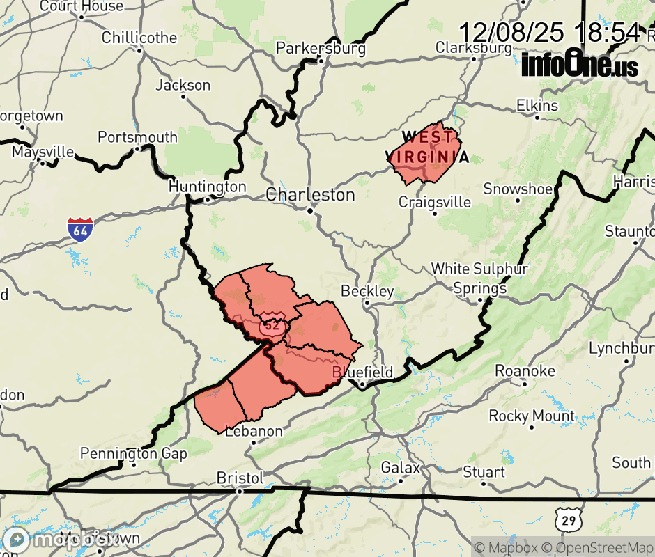 Canceled 12/8/25 8:59 PM Winter Weather Advisory issued December 8 at 6:52PM EST until December 8 at 9:00PM EST by NWS Charleston WV * WHAT... Snow. Additional snow accumulations up to one inch. * WHERE... Portions of southwest Virginia and central and southern West Virginia. * WHEN... Until 9 PM EST this evening. * IMPACTS... Roads, and especially bridges and overpasses, will likely be slick and hazardous. Plan on slippery road conditions. ![]() |