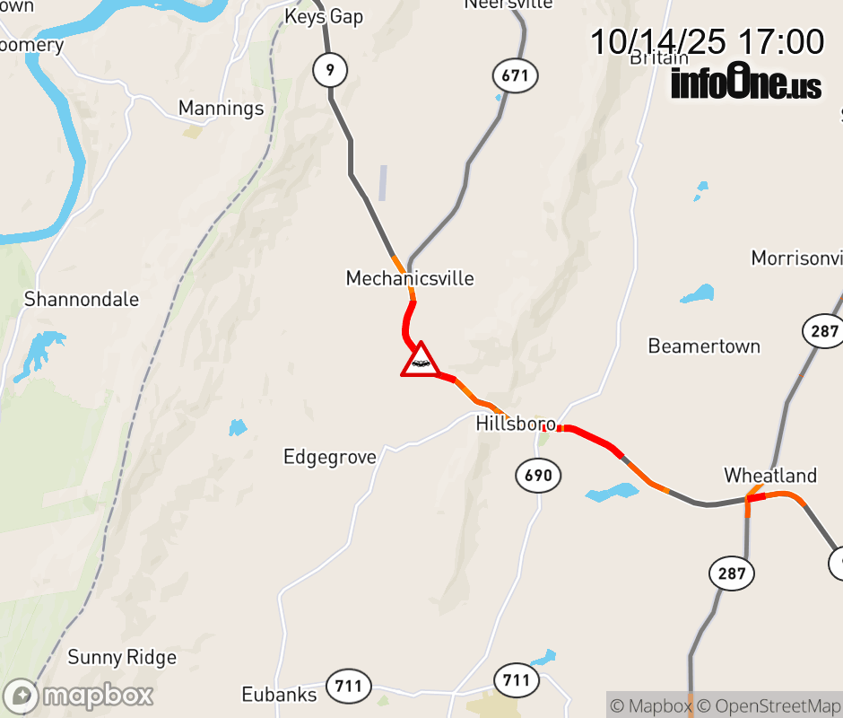 On VA-9 in the County of Loudoun, in the vicinity of Cider Mill Rd; Rt. 751N/S (Loudoun County), motorists can expect delays due to a vehicle crash. All east lanes are closed. All west lanes are closed. Updated: Tue 10/14/25 5:00 PM EDT ![]() Updated: Tue 10/14/25 5:00 PM EDT |