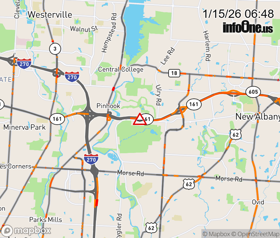 The right shoulder is blocked on SR-161 East beyond Little Turtle Way, due to a crash. Updated: Thu 1/15/26 6:48 AM EST ![]() Updated: Thu 1/15/26 6:48 AM EST |