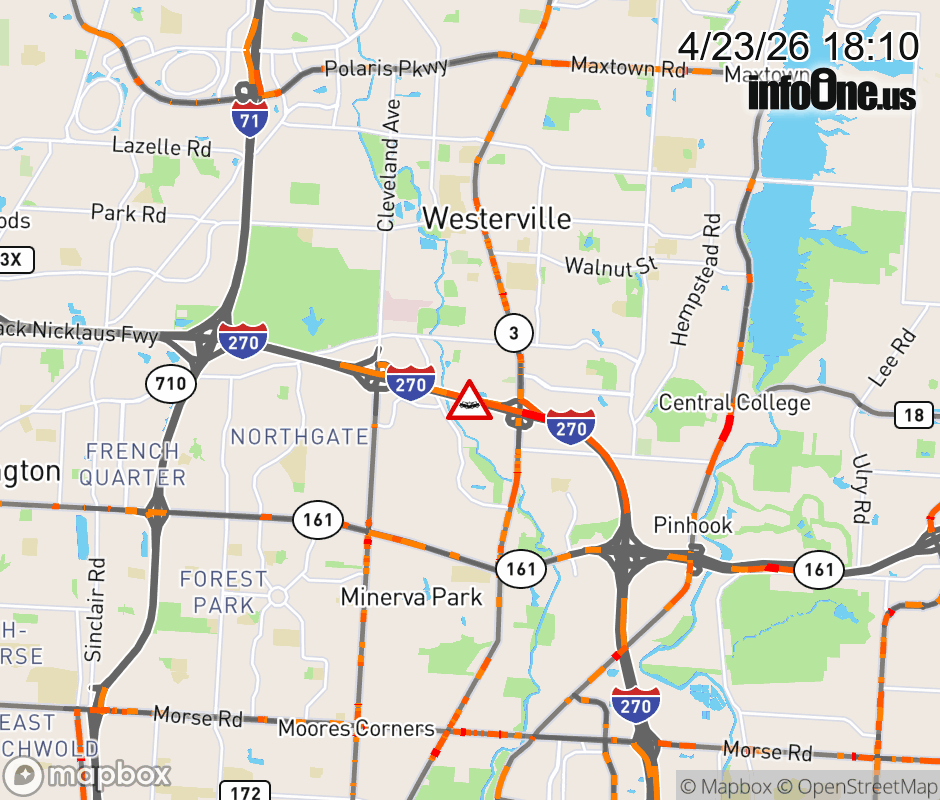 The left lane is blocked on I-270 West at SR-3, due to a crash. ![]() |