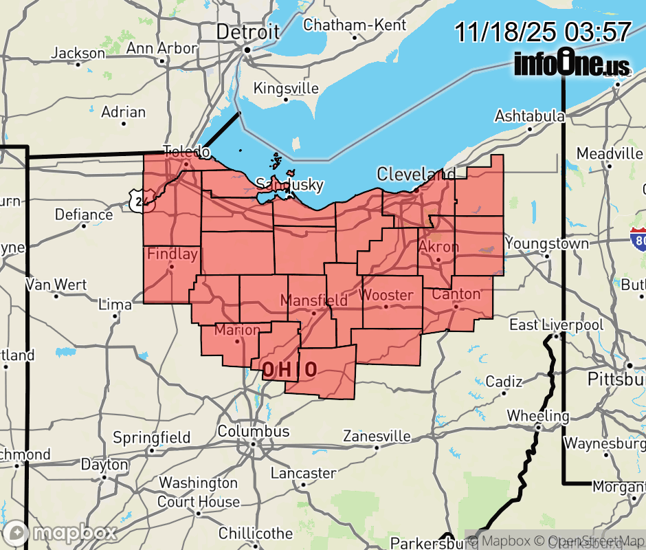Special Weather Statement issued November 18 at 3:55AM EST by NWS Cleveland OH A mix of light snow and sleet will move through the region this morning, resulting in untreated surfaces becoming slippery. The precipitation will changeover to all rain by about Noon as temperatures rise. Motorists should exercise caution and allow extra time to reach their destination this morning. ![]() |