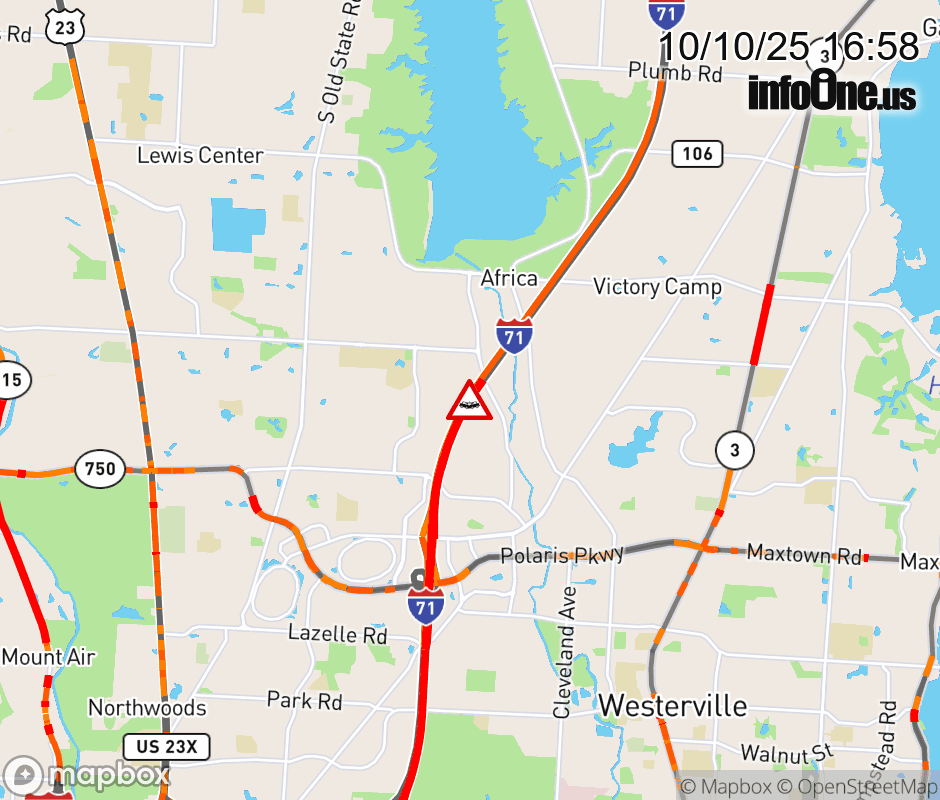 Shoulders are blocked on I-71 North beyond Polaris Pkwy/Gemini Place, due to a crash. Updated: Fri 10/10/25 4:58 PM EDT ![]() Updated: Fri 10/10/25 4:58 PM EDT |