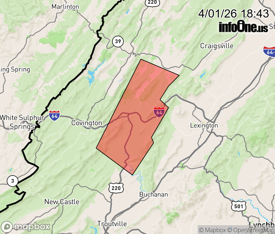 Canceled 4/1/26 7:15 PM Special Weather Statement issued April 1 at 6:42PM EDT by NWS Blacksburg VA At 641 PM EDT, Doppler radar was tracking strong thunderstorms along a line extending from near Nimrod Hall to near Oriskany. Movement was southeast at 15 mph. HAZARD...Wind gusts up to 40 mph. SOURCE...Radar indicated. IMPACT...Gusty winds could knock down tree limbs and blow around unsecured objects. Locations impacted include... Clifton Forge... Millboro... Eagle Rock... Iron Gate... Nimrod Hall... Douthat State Park... and Low Moor. ![]() |