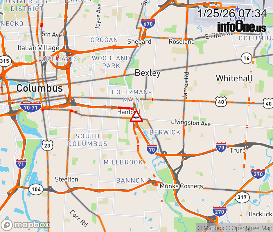 All lanes are closed on Ramp from US-33 to I-70 W at I-70 W, due to a crash. ![]() |