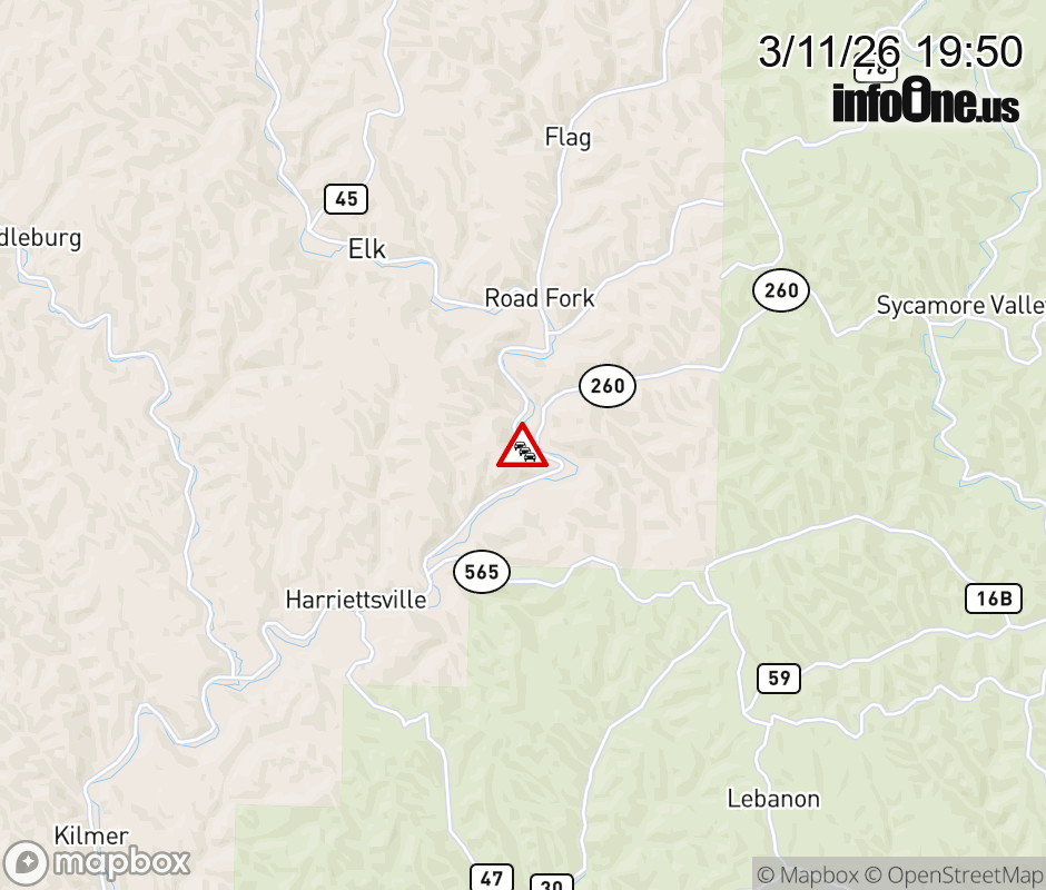 SR-260 CLOSED in BOTH DIRECTIONS 1 mile beyond Poplar Lick Rd to SR-78 (MM: 2), due to flooding. Use alternate route. ![]() |