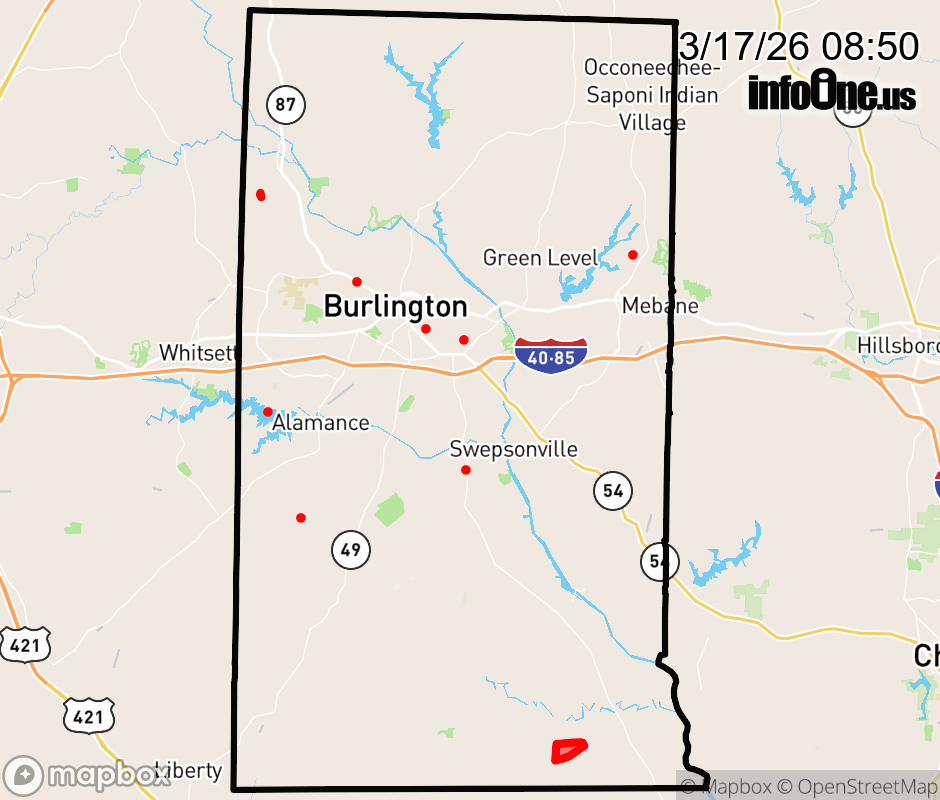 Alamance County has 11 power outages affecting 39 customers. Duke Energy 39 without power Estimated repair: Tue 3:00 PM Updated: Tue 3/17/26 8:50 AM EDT ![]() Updated: Tue 3/17/26 8:50 AM EDT |