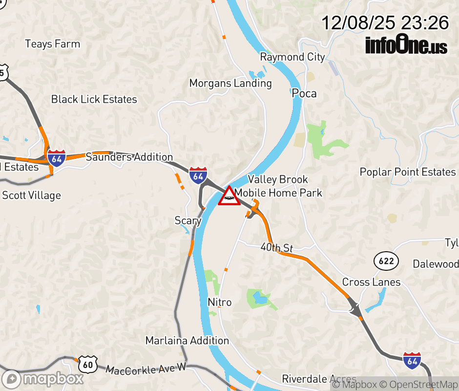 Canceled 12/9/25 1:24 AM Location: I-64 at MM 44.0, WV Accident.