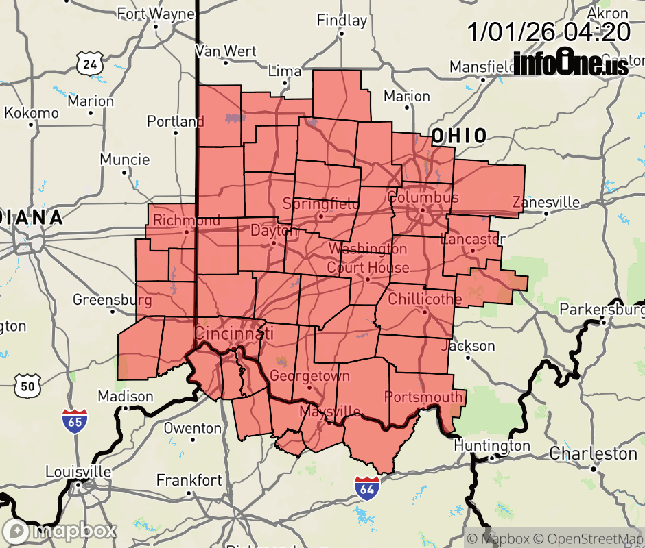 Canceled 1/1/26 9:00 AM Special Weather Statement issued January 1 at 4:18AM EST by NWS Wilmington OH Overnight periods of light snow accumulation, as well as patchy freezing drizzle, combined with temperatures falling into the teens and 20s, have created the potential for slick and icy conditions, primarily on untreated roadways, sidewalks and driveways. Motorists are advised to use caution, allow extra travel time and maintain increased stopping distance if traveling. ![]() |