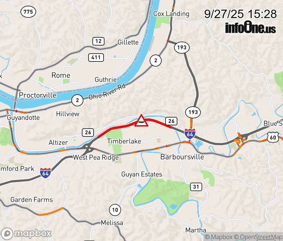In Cabell County there is a Vehicle Crash on I-64E at Mile Marker 16.5. Current lanes impacted: RIGHT LANES.