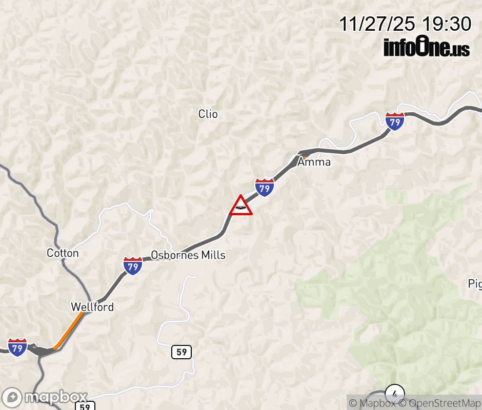 Canceled 11/27/25 11:36 PM Location: I-79 at MM 24.0, WV Accident.