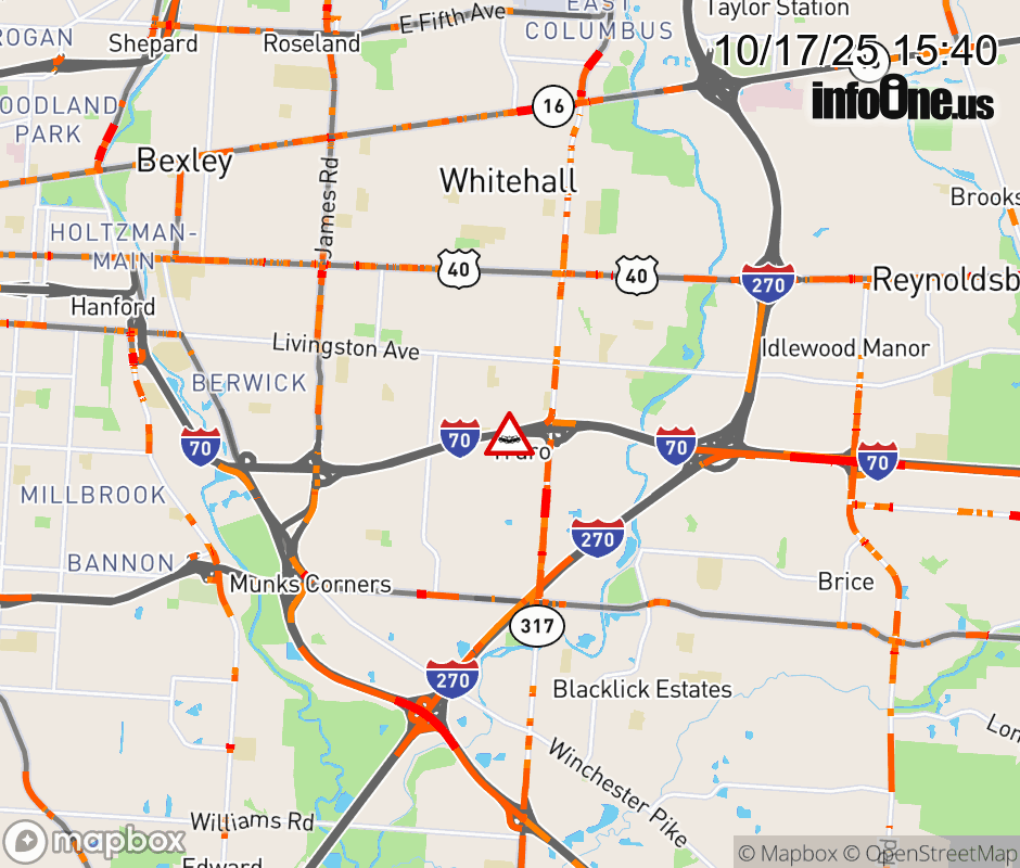The right shoulder is blocked on I-70 East at SR-317 South/Hamilton Rd, due to a crash. ![]() |