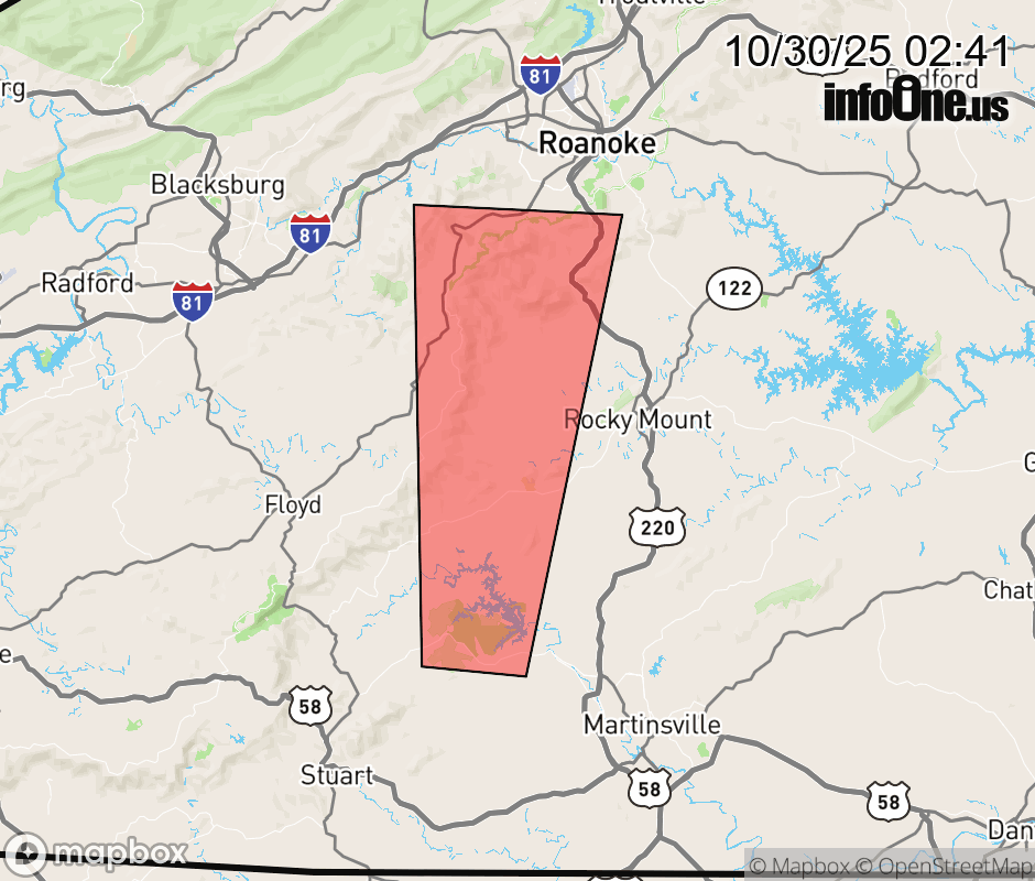 Canceled 10/30/25 3:15 AM Special Weather Statement issued October 30 at 2:40AM EDT by NWS Blacksburg VA At 239 AM EDT, a strong storm was located near Fairy Stone State Park, or 7 miles southwest of Ferrum, moving north at 55 mph. Winds in excess of 30 mph are possible with this storm. Locations impacted include... Boones Mill... Copper Hill... Bent Mountain... Ferrum... Endicott... Fairy Stone State Park... and Poages Mill. Torrential rainfall is also occurring with this storm, and may cause localized flooding. Do not drive your vehicle through flooded roadways. ![]() |