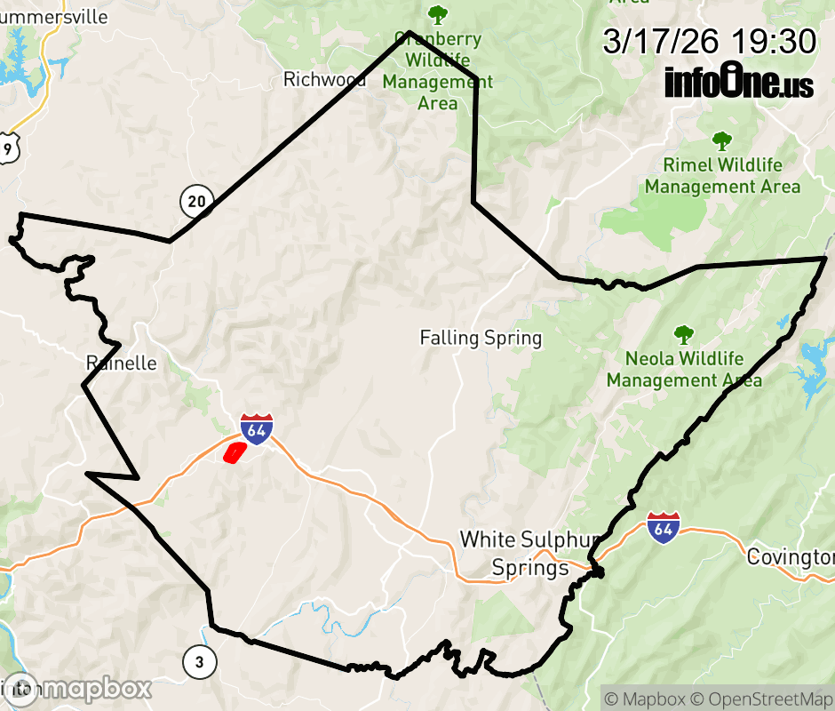 Canceled 3/18/26 1:00 AM Greenbrier County has 1 power outage affecting 46 customers. Appalachian Power 46 without power Smoot: Customers affected: 46 (18%) Estimated repair: Wed 3:30 AM ![]() |