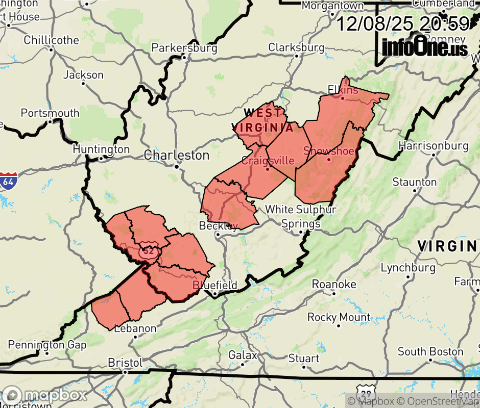 Canceled 12/8/25 9:00 PM Winter Weather Advisory issued December 8 at 8:57PM EST until December 8 at 9:00PM EST by NWS Charleston WV The snow was diminishing, with little if any additional accumulation expected. Therefore, the Winter Storm Warning is allowed to expire. However, roads will be slick through the overnight due to nighttime refreezing of snow melt, in addition to any remaining snow. ![]() |
