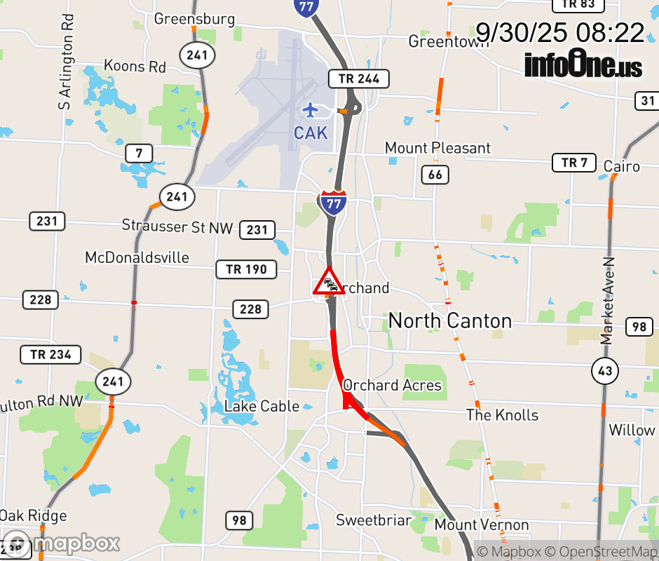 Congestion on I-77 South from Portage St to beyond Everhard Rd/Whipple Ave. Updated: Tue 9/30/25 8:22 AM EDT ![]() Updated: Tue 9/30/25 8:22 AM EDT |