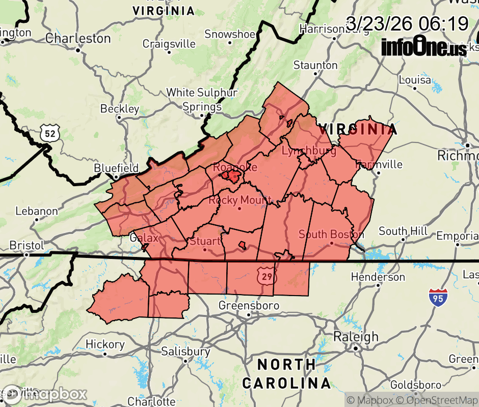 Special Weather Statement issued March 23 at 6:18AM EDT by NWS Blacksburg VA The combination of dry fine fuels, relative humidities between 20 and 30 percent, northwest wind gusts in excess of 20 mph, and warm temperatures will lead to an increased risk for the rapid spread of wildfires this afternoon. Residents and visitors are urged to properly dispose of cigarette butts, matches, and any other flammable items in appropriate containers. Additionally, exercise caution if operating any equipment that could create sparks and keep vehicles off of dry grass. Most dry grasses, dead leaves, and other tree litter could easily ignite and spread fire quickly. Lastly, remember to obey local burn bans. For more information about wildfire danger, burn restrictions, and wildfire prevention and education, please visit your state forestry or environmental protection website. Virginia residents are reminded that open burning is prohibited before 4 PM each day through April 30th. ![]() |