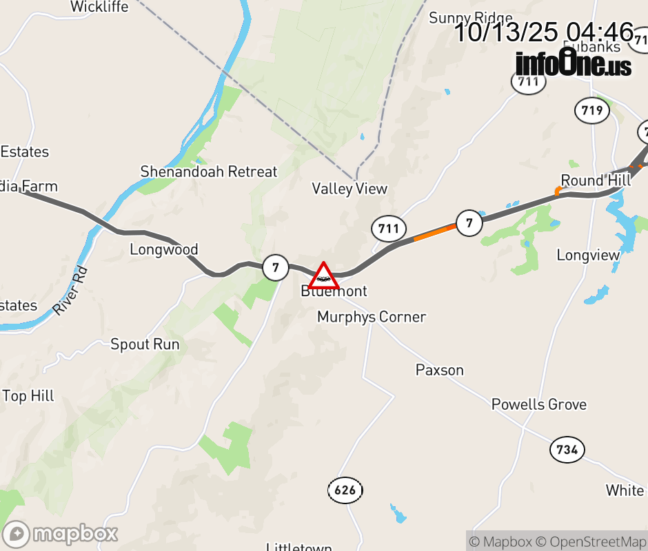 On VA-7 in the County of Loudoun, in the vicinity of Snickersville Tpke; Rt. 734E/W (Loudoun County), motorists can expect delays due to a vehicle crash. The east left shoulder and left lane are closed. Updated: Mon 10/13/25 4:46 AM EDT ![]() Updated: Mon 10/13/25 4:46 AM EDT |