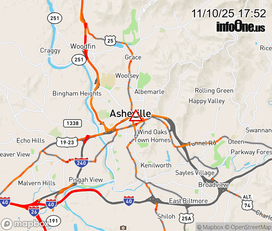 The left lane is closed at Exit 5A, US 25 (Merrimon Avenue). ![]() |