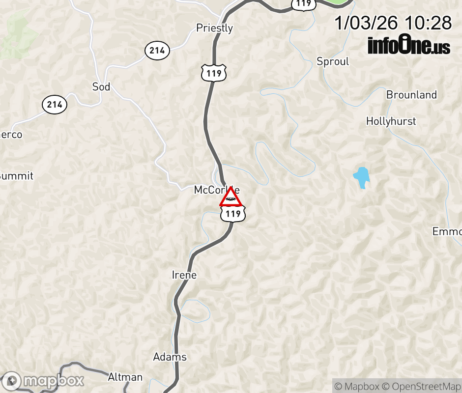 Vehicle Crash on US-119 SB at MM 63. ![]() |