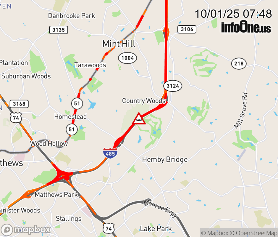 Location: I-485I at MM 48, NC Vehicle Crash.