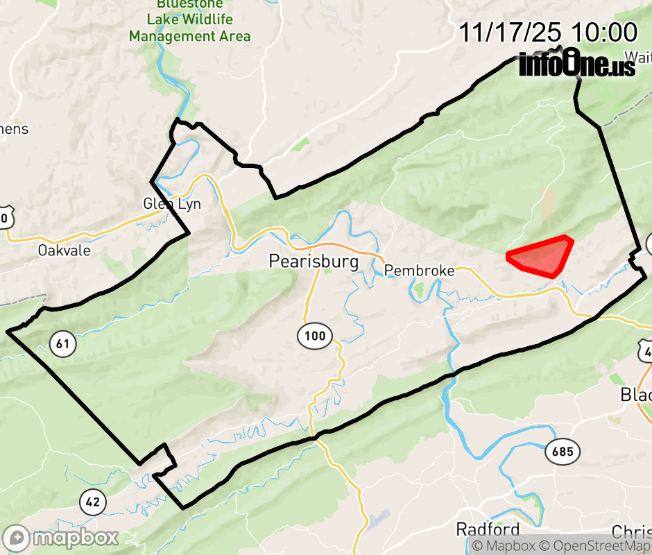 Canceled 11/17/25 11:30 AM Giles County has 1 power outage affecting 131 customers. Appalachian Power 131 without power Newport: Customers affected: 131 (16%) Estimated repair: Mon 1:00 PM Updated: Mon 11/17/25 10:00 AM EST ![]() Updated: Mon 11/17/25 10:00 AM EST |