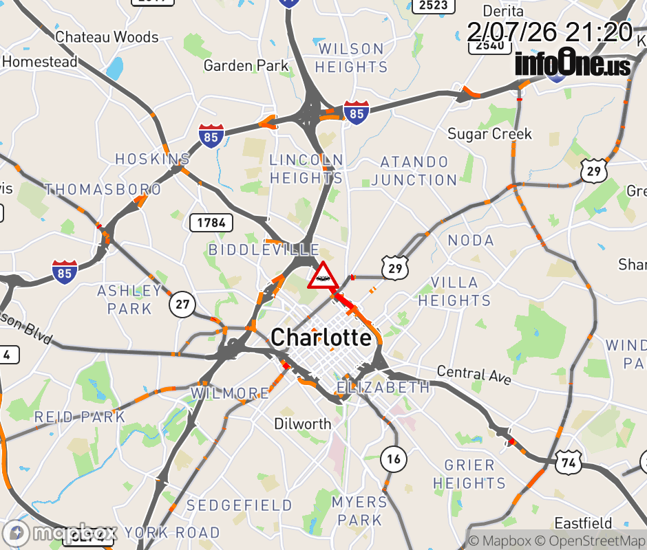 The right shoulder is closed near Exit 5A (I-77). Updated: Sat 2/7/26 9:20 PM EST ![]() Updated: Sat 2/7/26 9:20 PM EST |