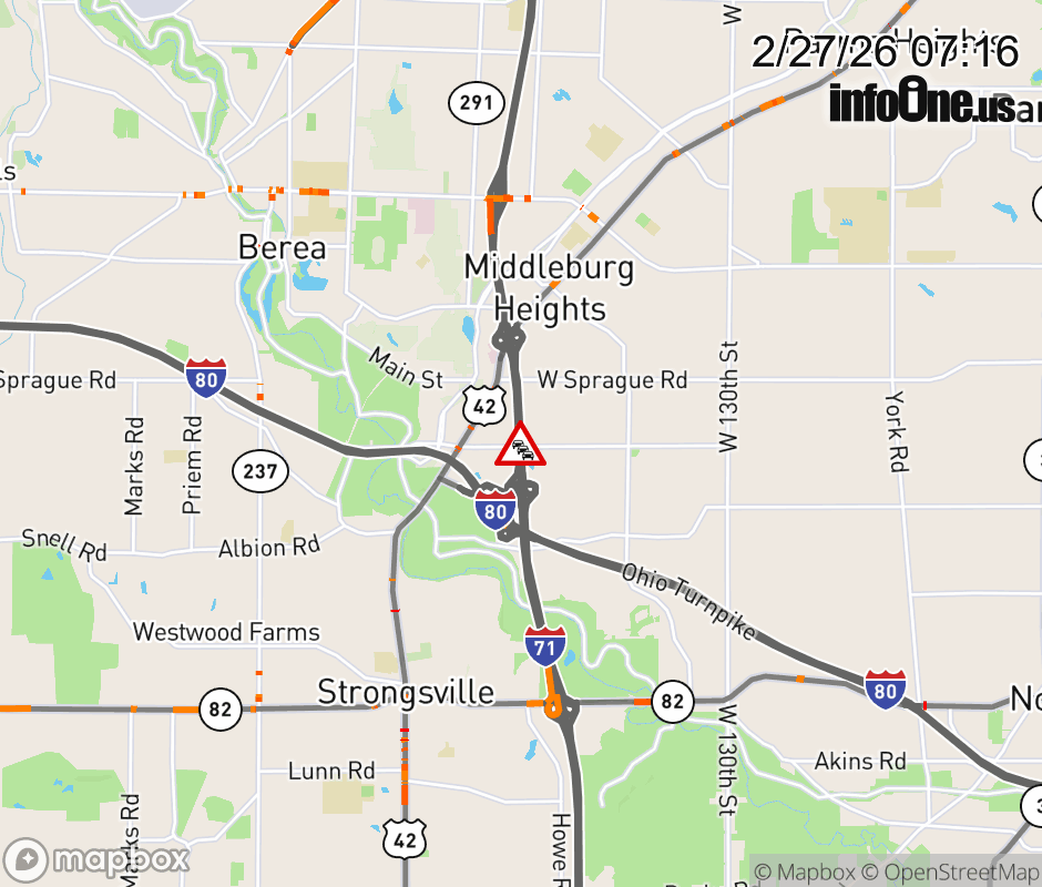The left shoulder is blocked on I-71 North beyond I-80/Ohio Turnpike, due to repairs/maintenance. ![]() |