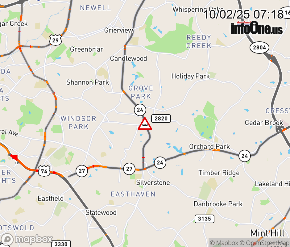 Location: W.T. Harris Blvd (NC-24E), NC Vehicle Crash.